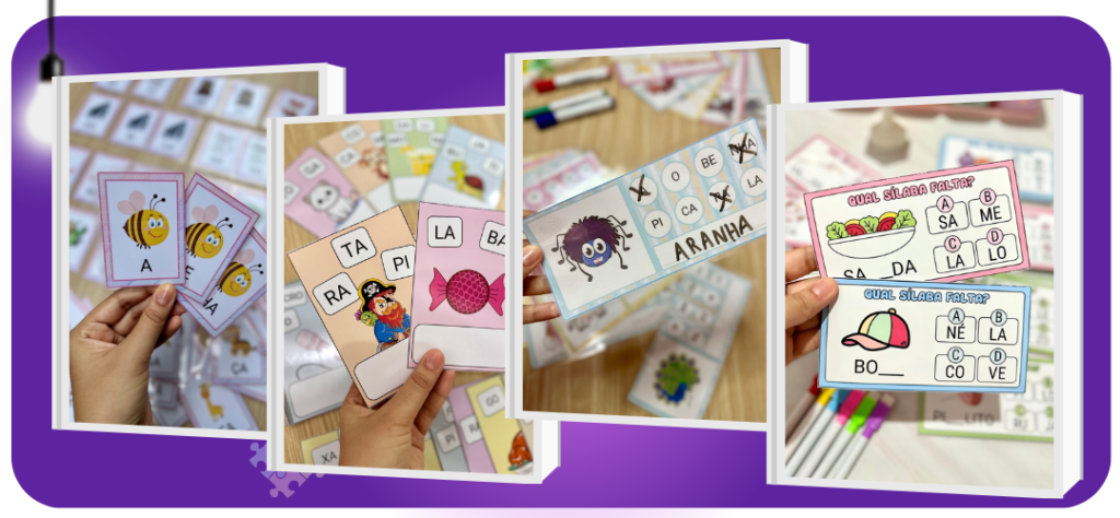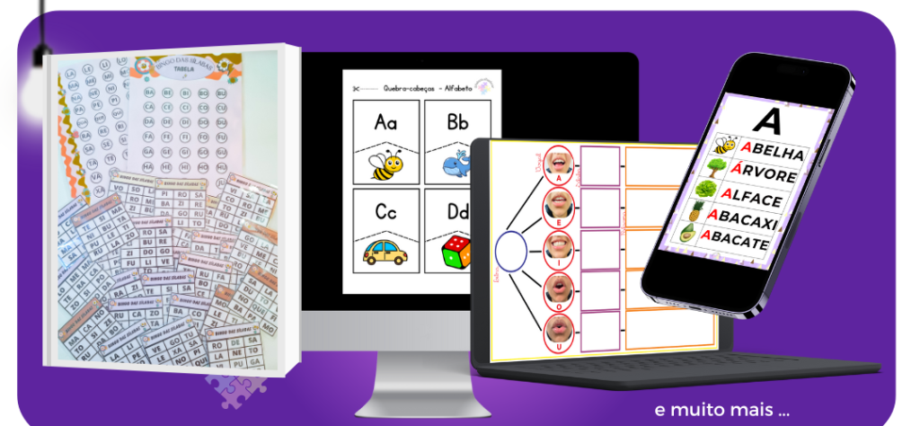 Atividades práticas voltadas para a alfabetização de forma leve e acessível, acompanhadas por fichas de leitura e jogos significativos para consolidar o aprendizado. (74 páginas – PDF)